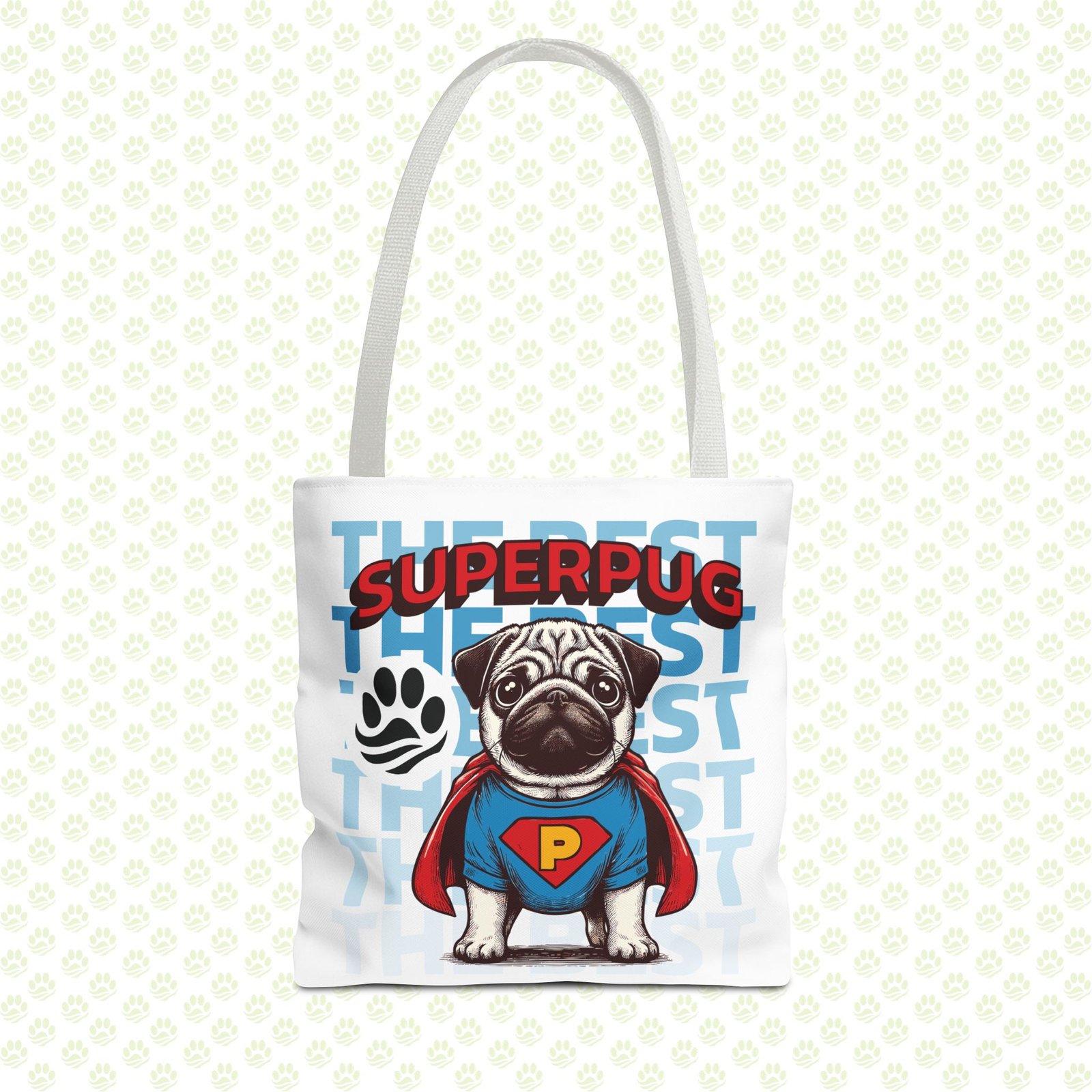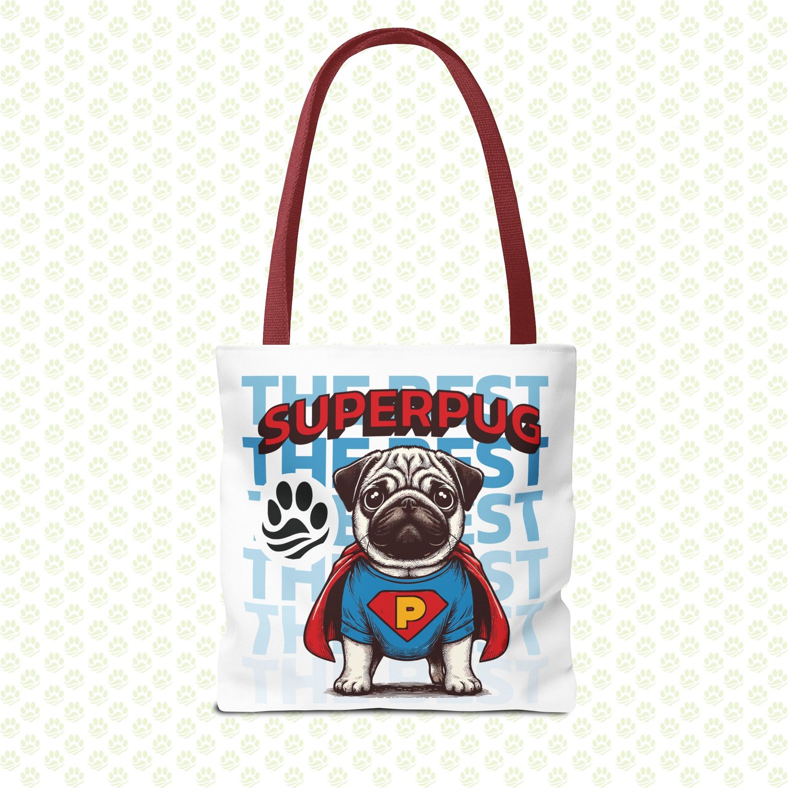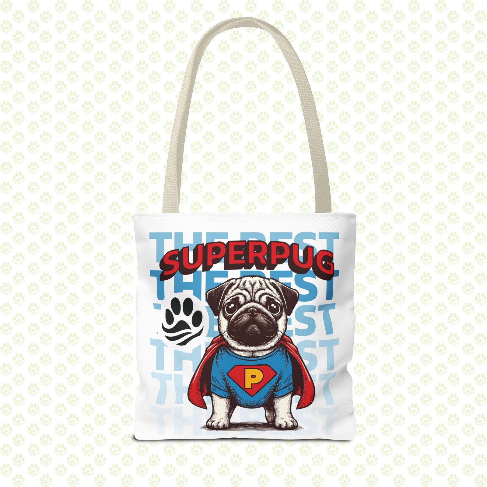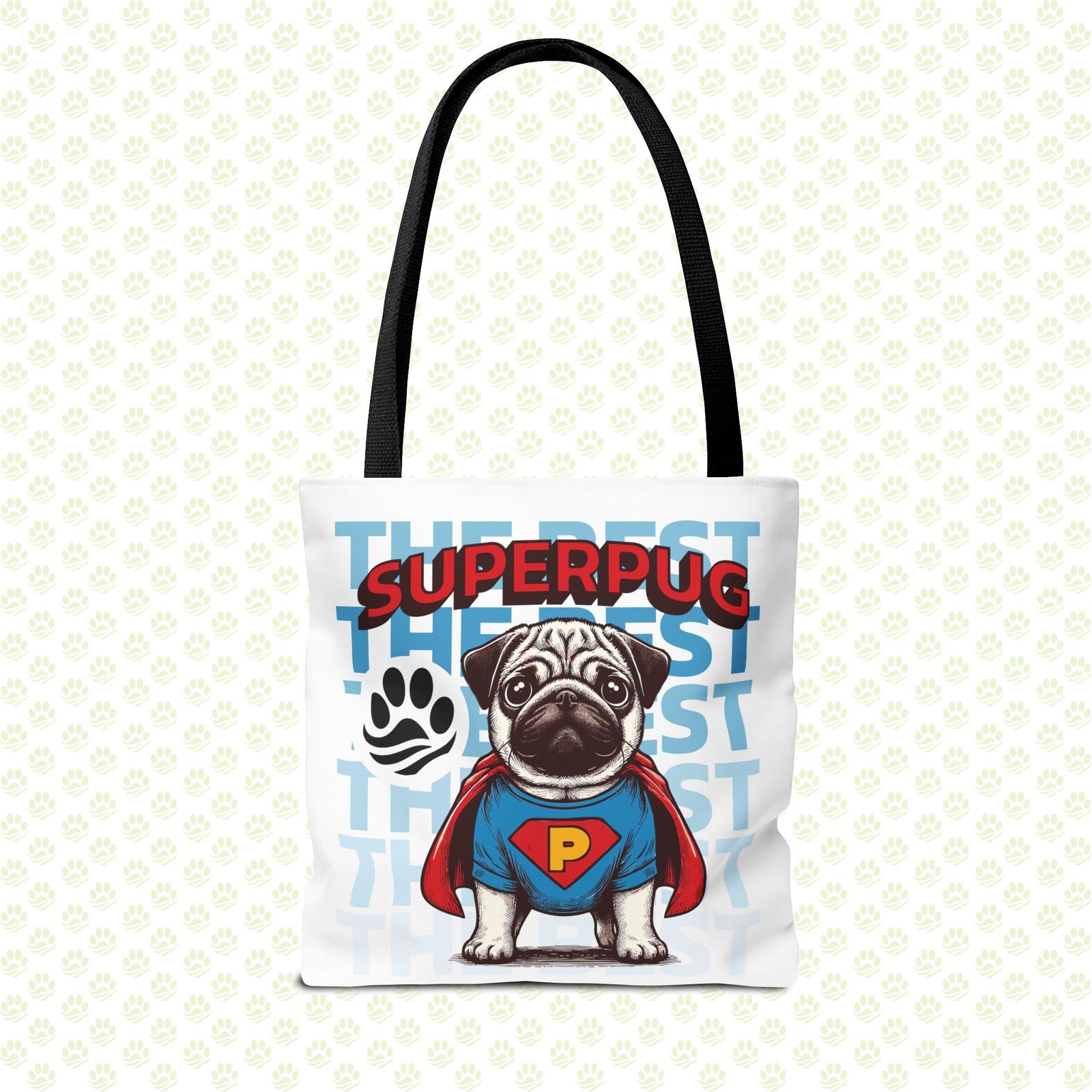 Super PUG Tote Bag – Cute Superhero Dog Print, Fun Pet Lover Eco Shopper, Durable Canvas Tote