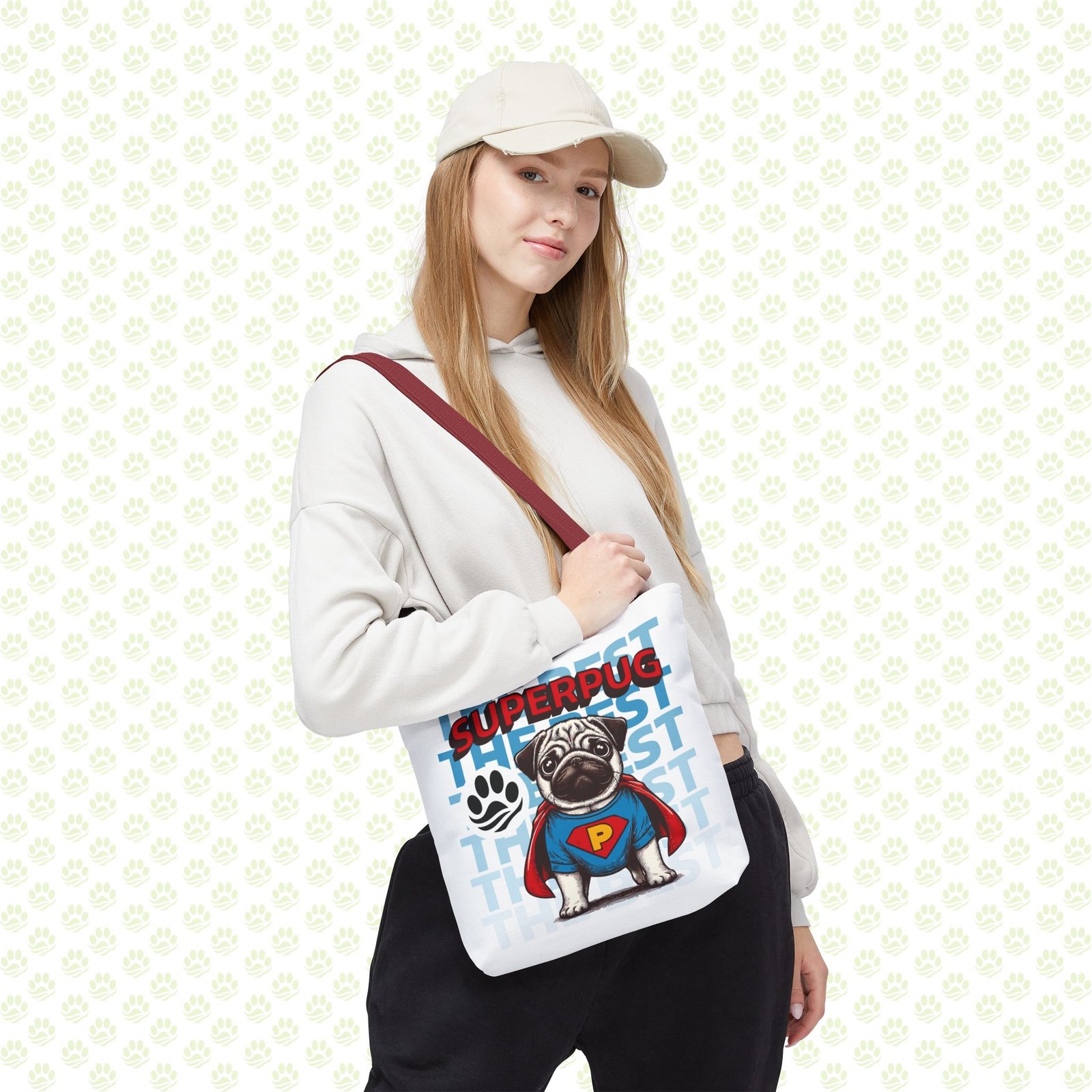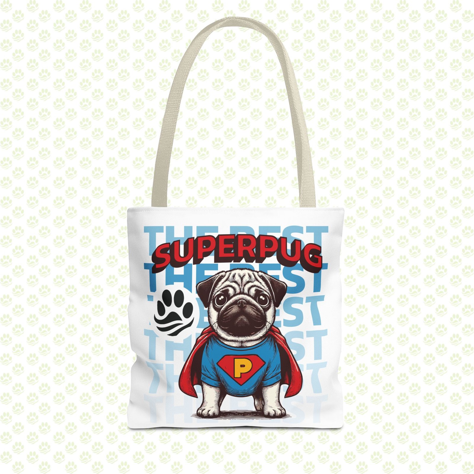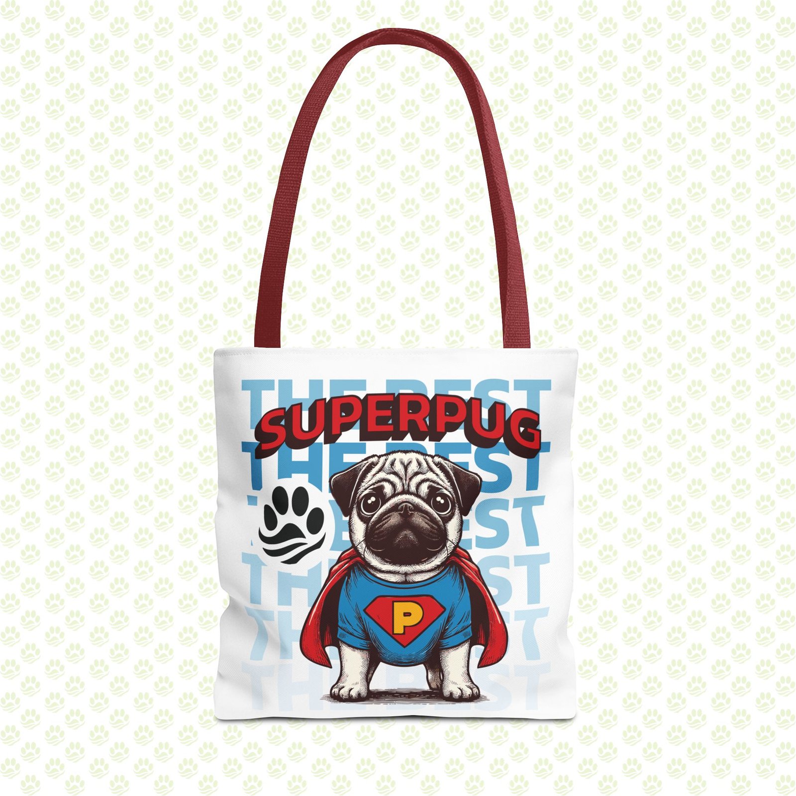 Super PUG Tote Bag – Cute Superhero Dog Print, Fun Pet Lover Eco Shopper, Durable Canvas Tote