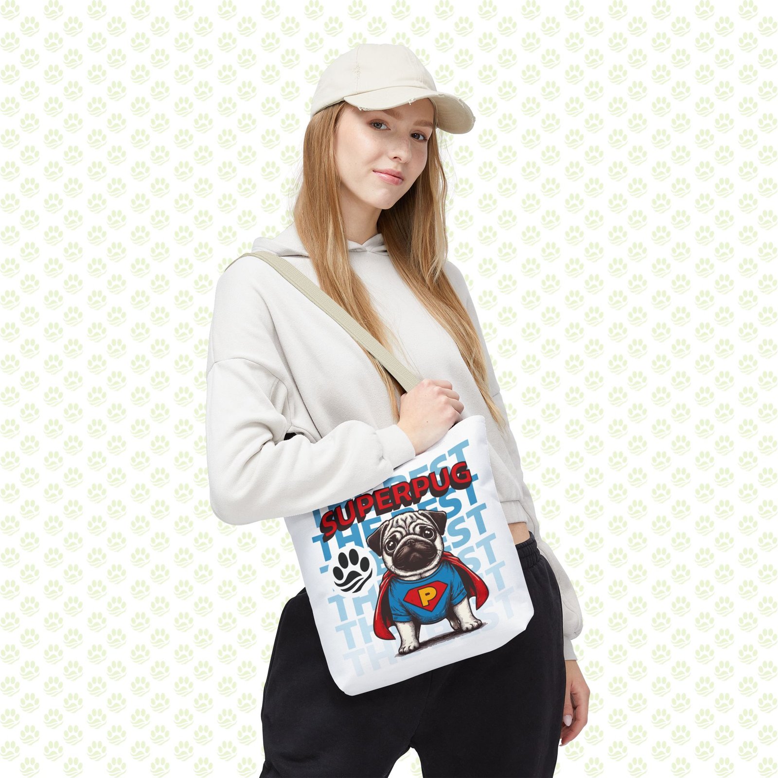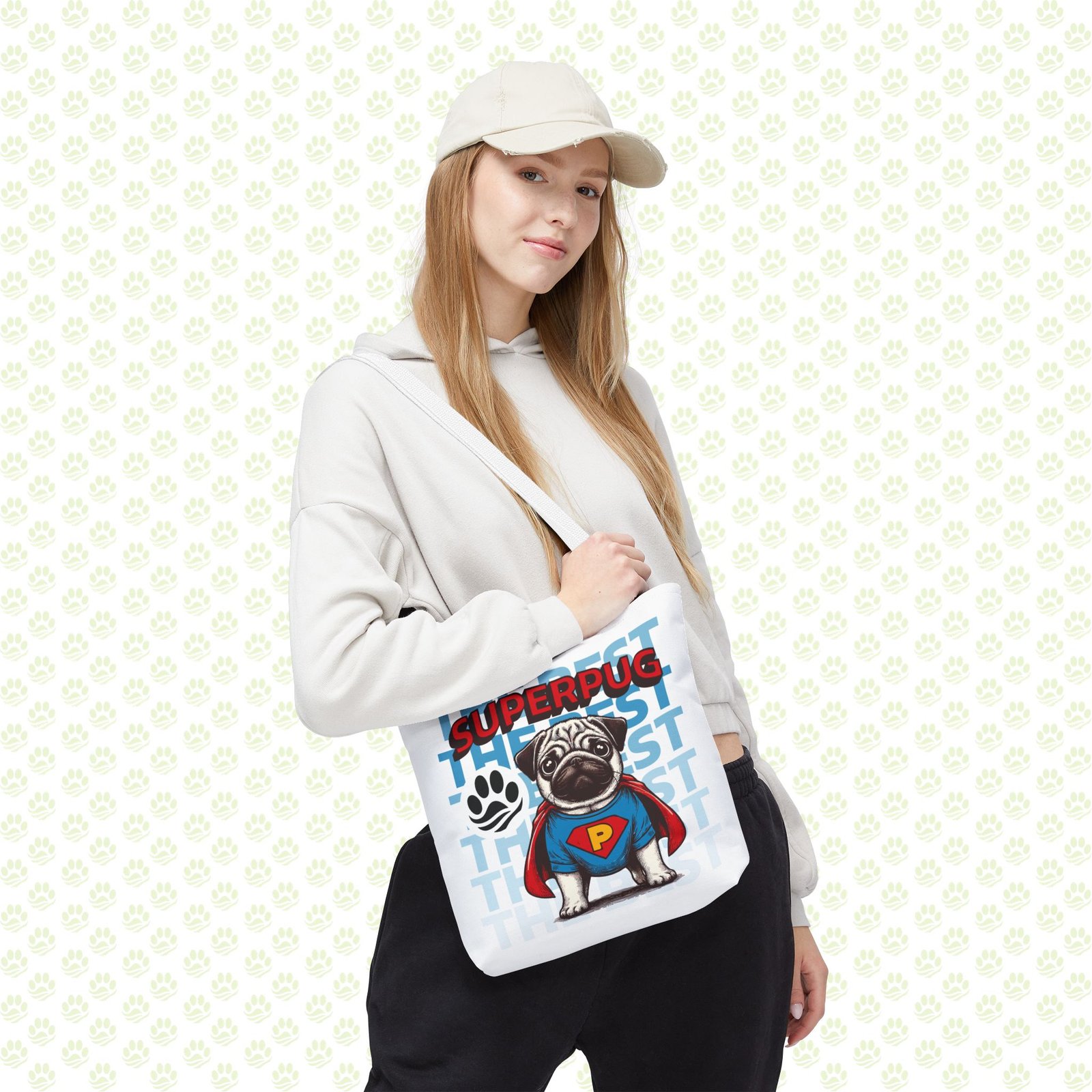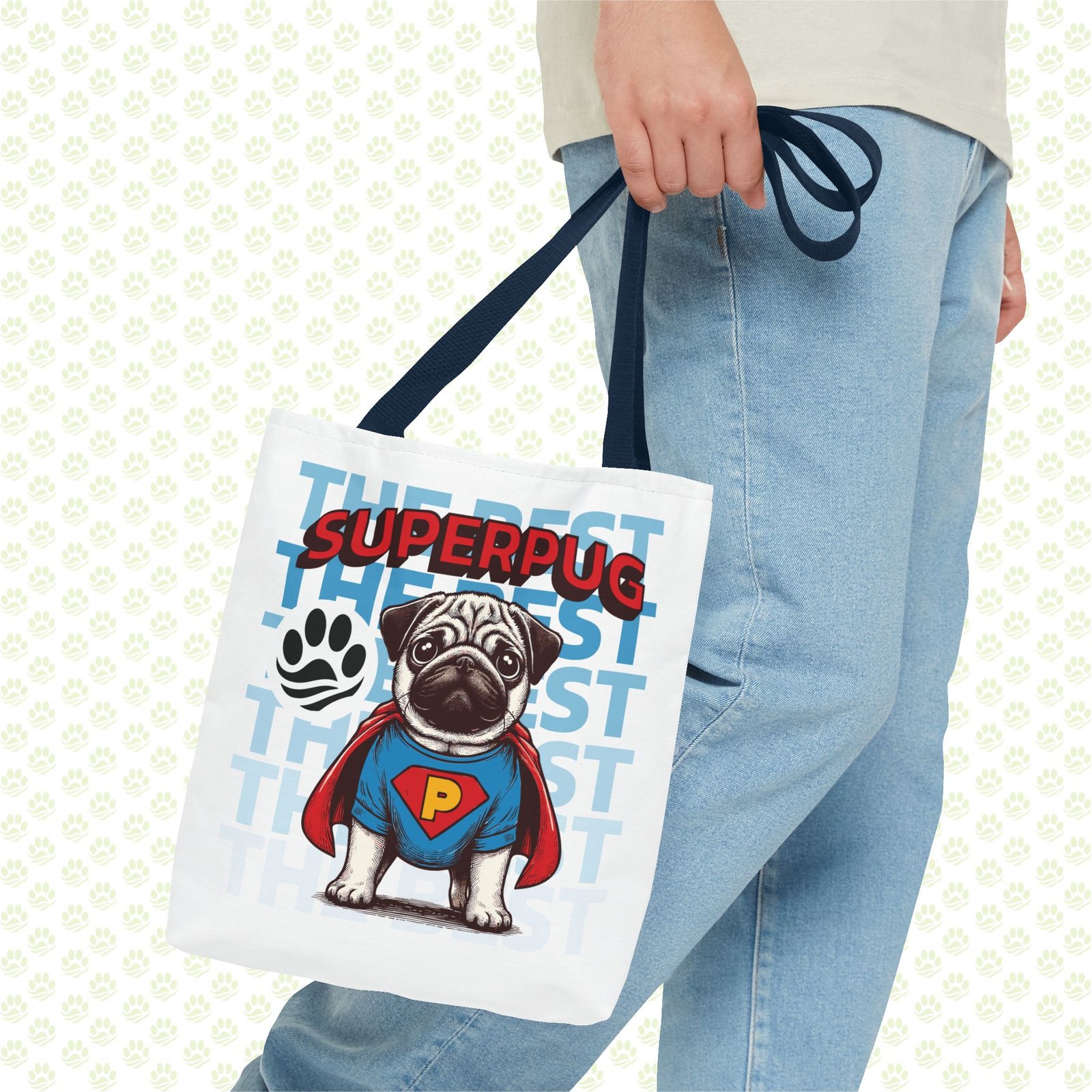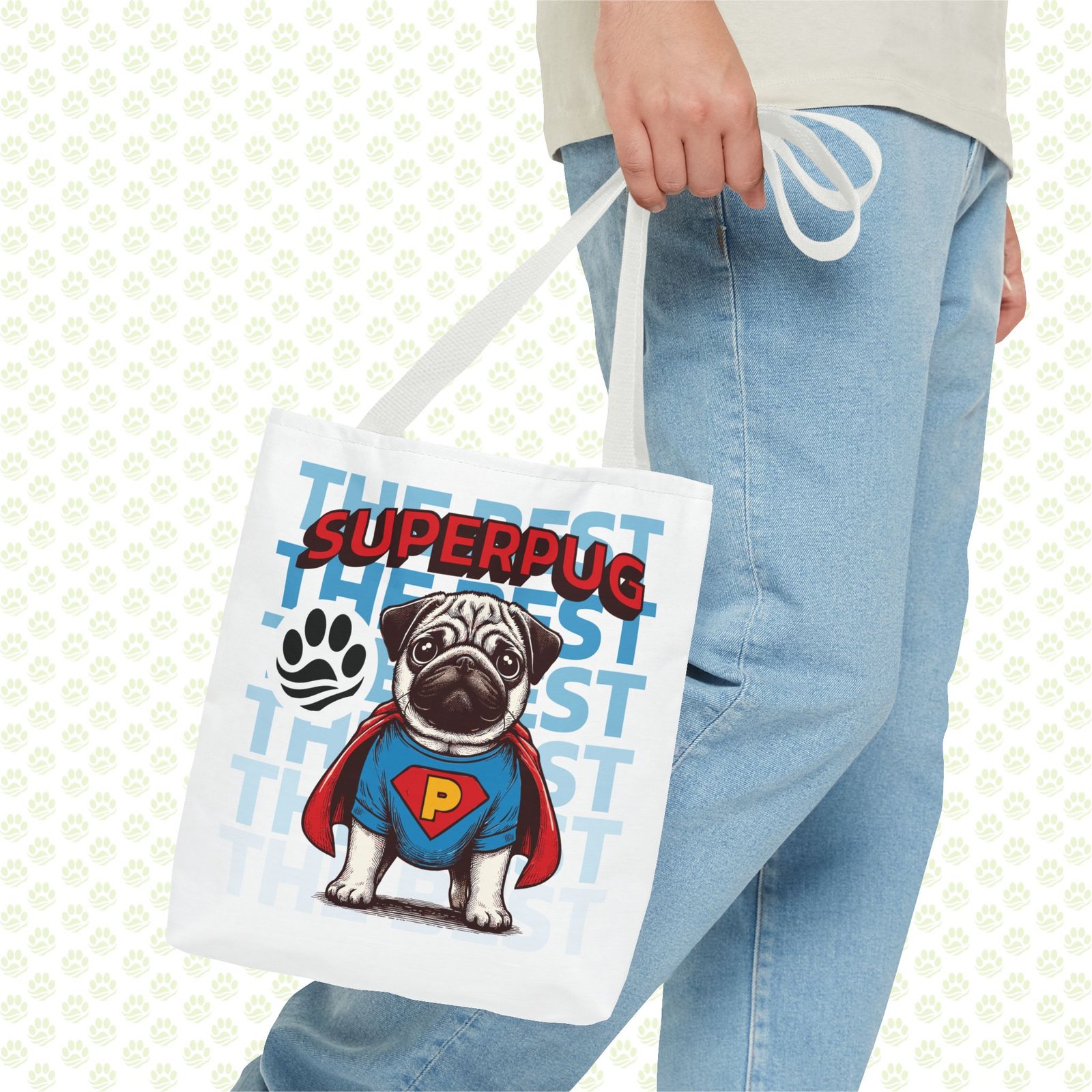 Super PUG Tote Bag – Cute Superhero Dog Print, Fun Pet Lover Eco Shopper, Durable Canvas Tote
